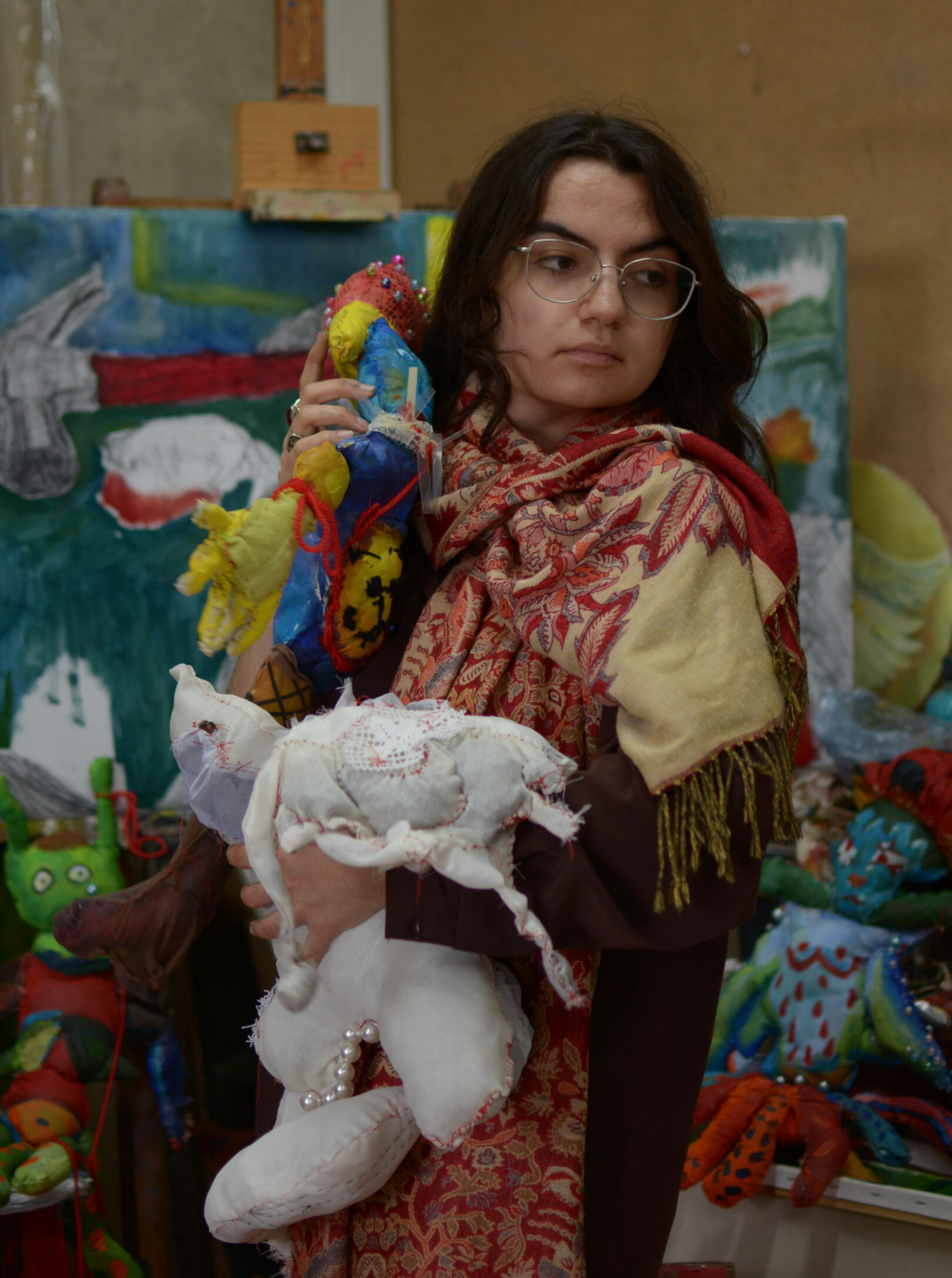 As figuras em tecido, criadas coletivamente no desenho, trazem a imaginação do outro, o sonho e a realidade.EN